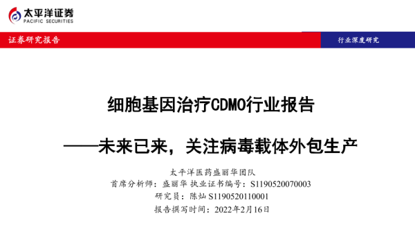 【太平洋证券】【20220216】细胞基因治疗CDMO行业报告:未来已来,关注病毒载体外包生产-72页