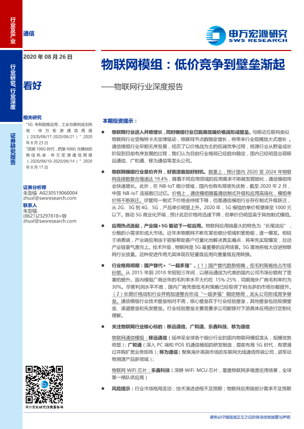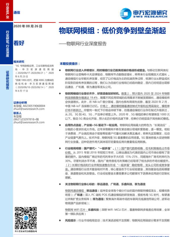 【申万宏源】【20200826】物联网模组:低价竞争到壁垒渐起-36页