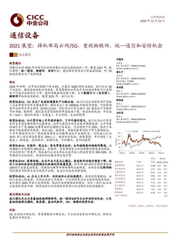 【中金公司】【20201229】2020.12.29-通信设备2021展望:择机布局云网5G,重视物联网、统一通信和安防机会-33页