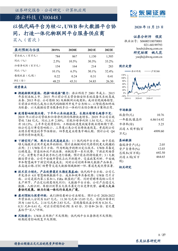 【东吴证券】【20201123】浩云科技:以低代码平台为核心,UWB和大数据平台协同,打造一体化物联网平台服务供应商-27页