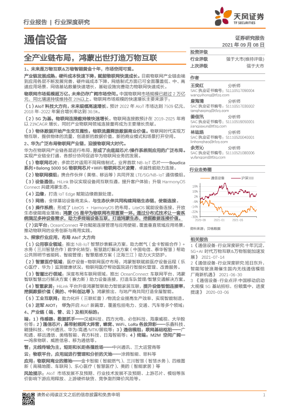 【天风证券】【20210908】通信设备:全产业链布局,鸿蒙出世打造万物互联-70页