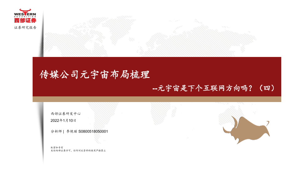 【西部证券】【20220110】传媒公司元宇宙布局梳理-39页