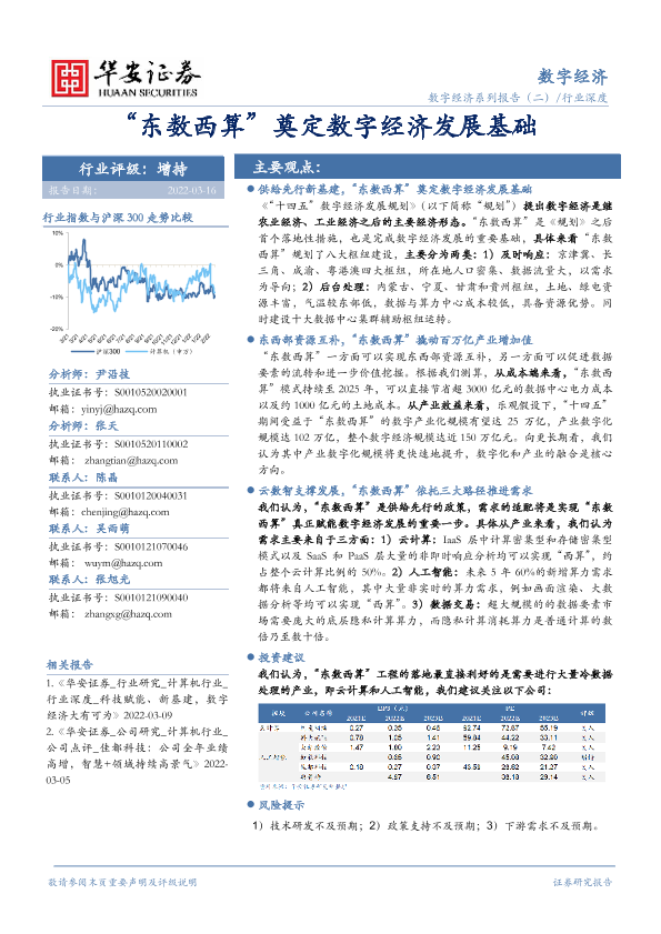 【华安证券】【20220316】数字经济行业系列报告(二):“东数西算”奠定数字经济发展基础-24页