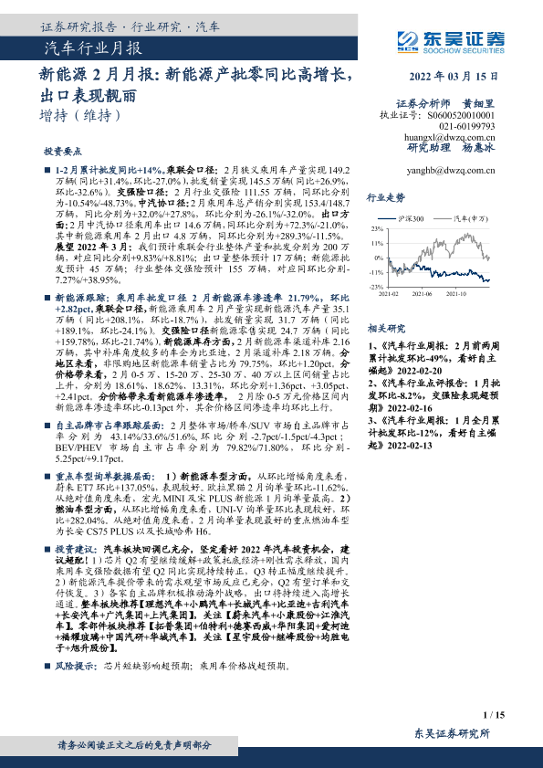 【东吴证券】【20220315】新能源行业2月月报:新能源产批零同比高增长,出口表现靓丽-15页