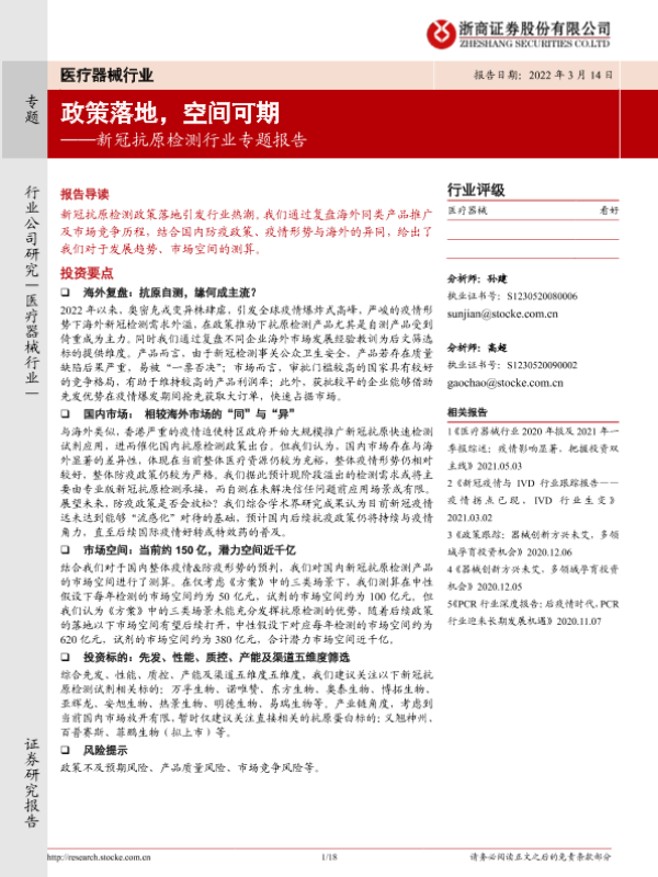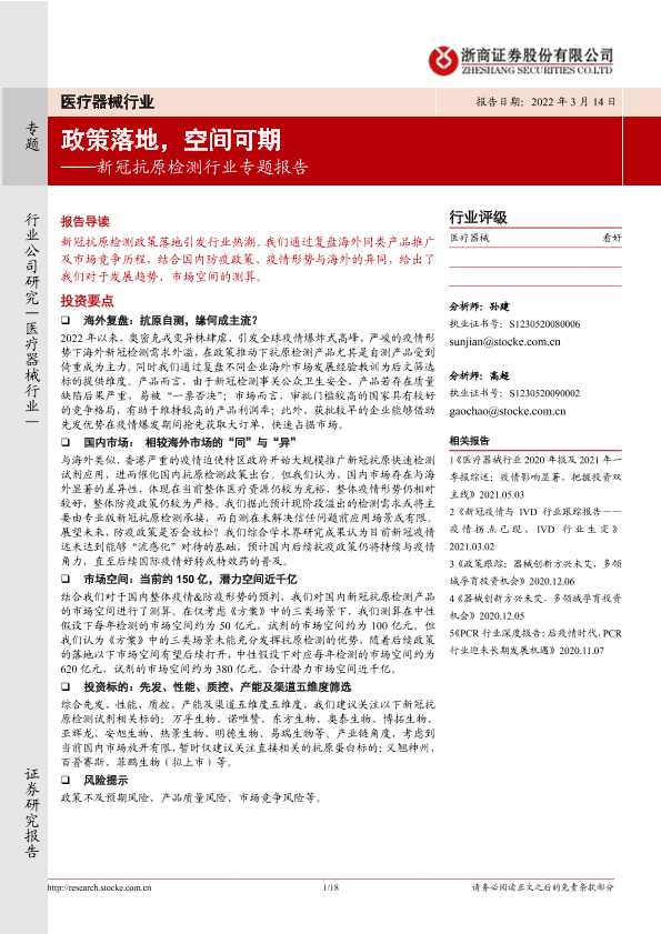 【浙商证券】【20220314】新冠抗原检测行业专题报告:政策落地,空间可期-18页
