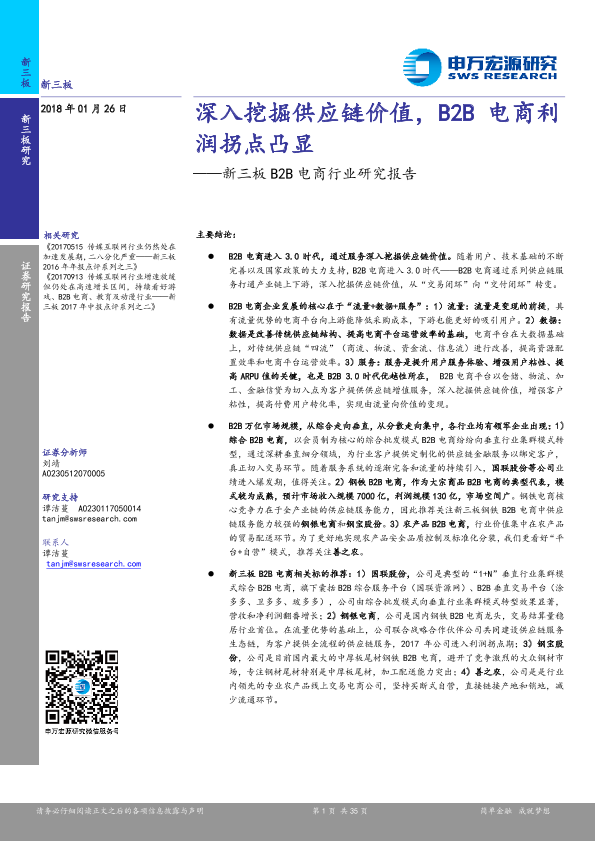 【申万宏源】【20180126】2018.01.26-新三板B2B电商行业研究报告:深入挖掘供应链价值,B2B电商利润拐点凸显-35页