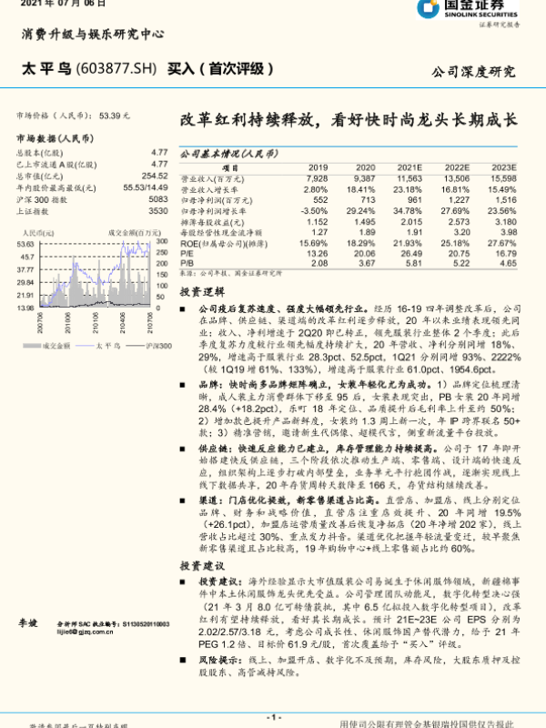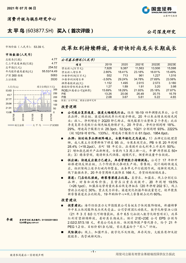 【国金证券】【20210706】太平鸟:改革红利持续释放,看好快时尚龙头长期成长-32页