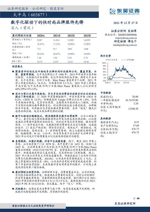 【东吴证券】【20211227】太平鸟:数字化驱动下的快时尚品牌服饰先锋-40页