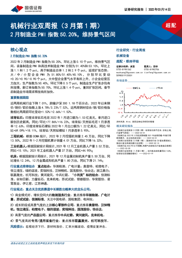 【国信证券】【20220314】机械行业双周报(3月第1期):2月制造业PMI指数50.20%,维持景气区间-24页