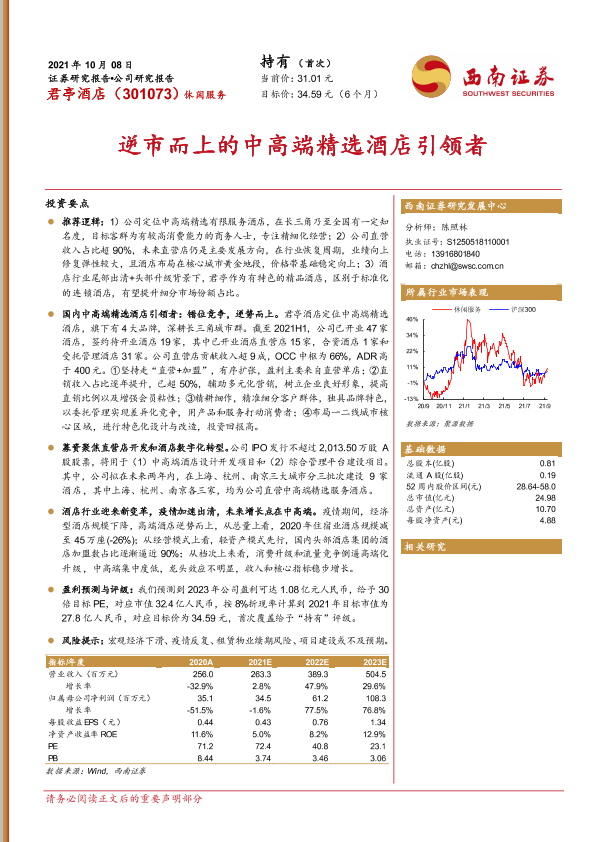 【西南证券】【20211008】君亭酒店-逆市而上的中高端精选酒店引领者-31页