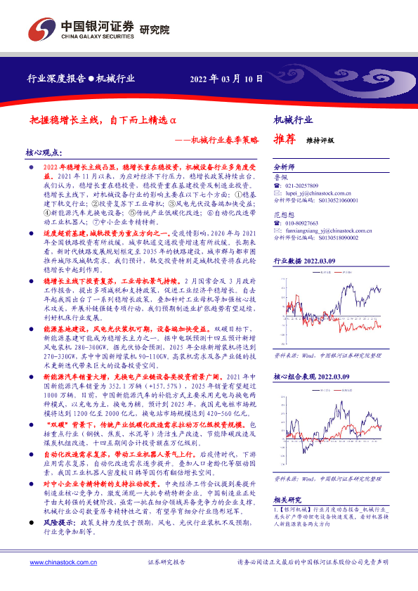 【银河证券】【20220310】机械行业春季策略:把握稳增长主线,自下而上精选α-44页