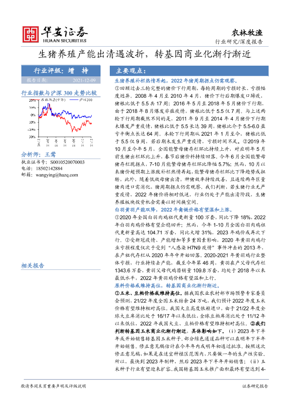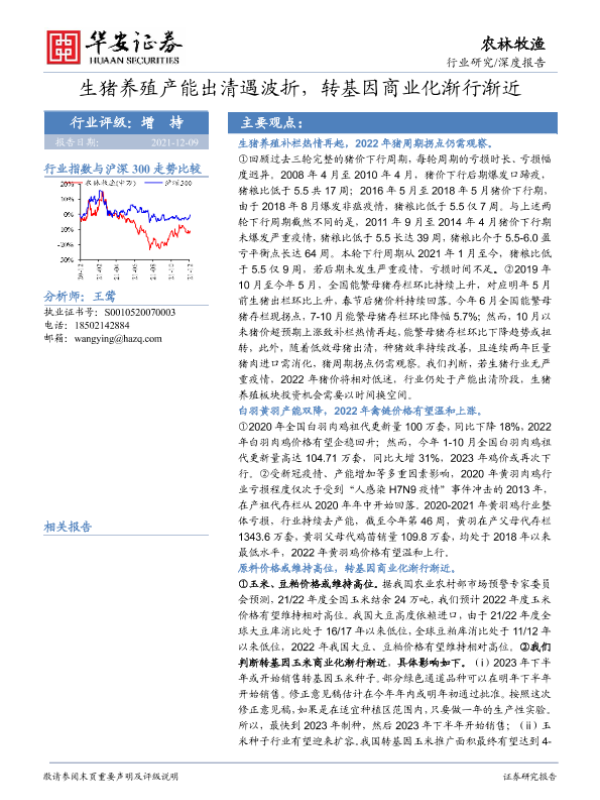【华安证券】【20211209】2021.12.09-农林牧渔行业研究:生猪养殖产能出清遇波折,转基因商业化渐行渐近-50页