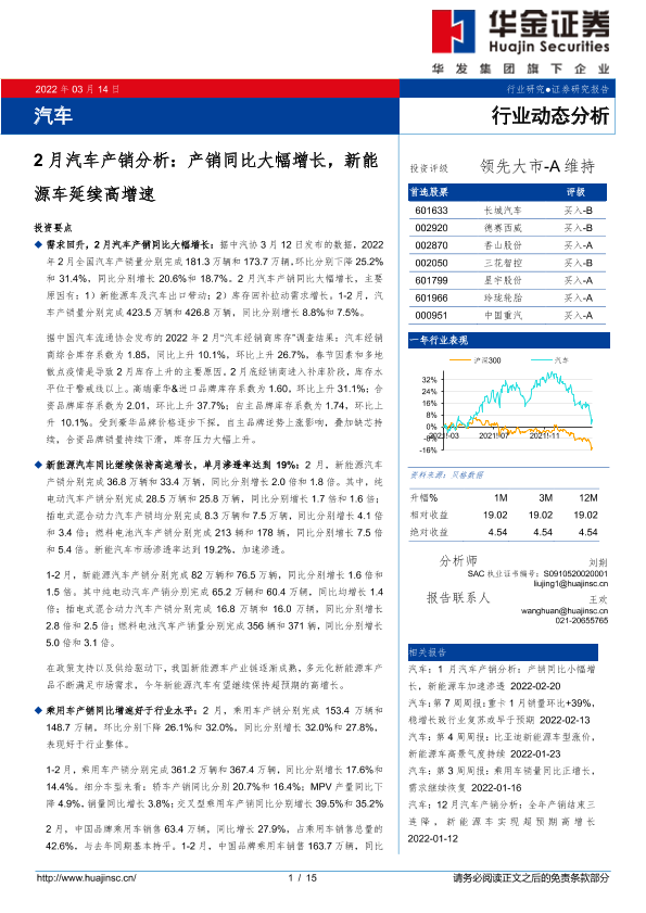 【华金证券】【20220314】汽车行业2月汽车产销分析:产销同比大幅增长,新能源车延续高增速-15页