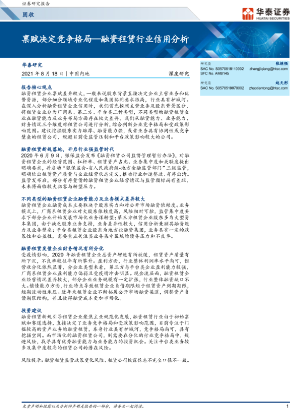 【华泰证券】【20210818】2021.08.18-融资租赁行业信用分析:禀赋决定竞争格局-32页