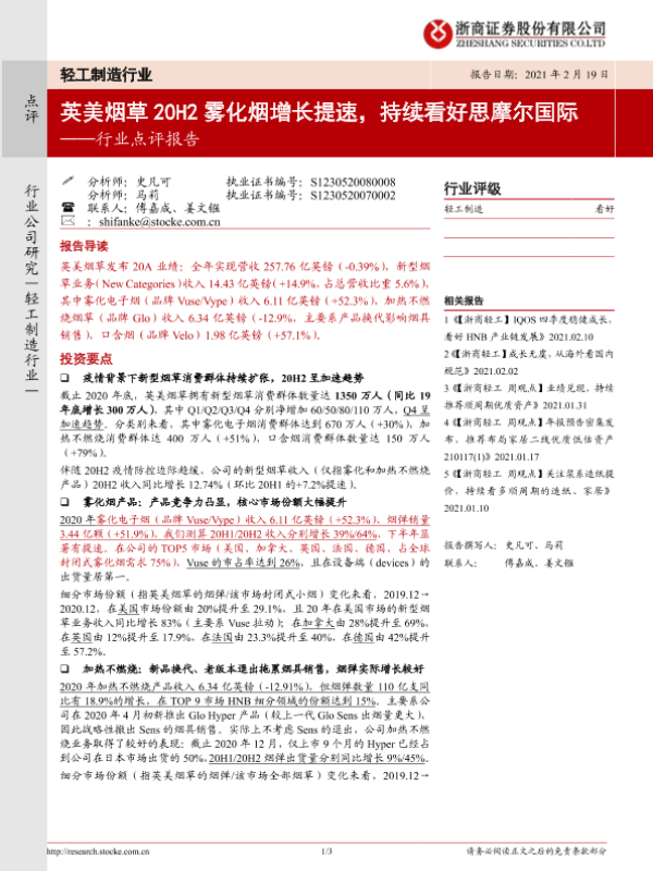 【浙商证券】【20210219】轻工制造行业点评报告-英美烟草20H2雾化烟增长提速-持续看好思摩尔国际-3页