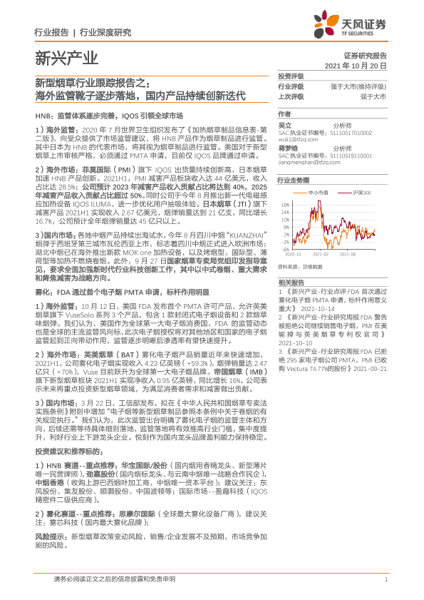 【天风证券】【20211020】2021-10-20-新型烟草行业跟踪报告之-海外监管靴子逐步落地-国内产品持续创新迭代-22页