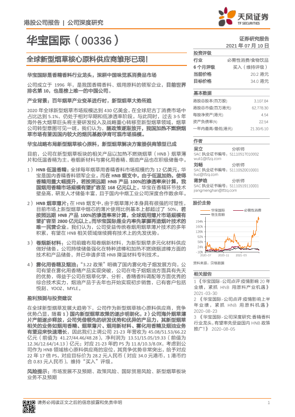 【天风证券】【20210710】华宝国际:全球新型烟草核心原料供应商雏形已现!-35页