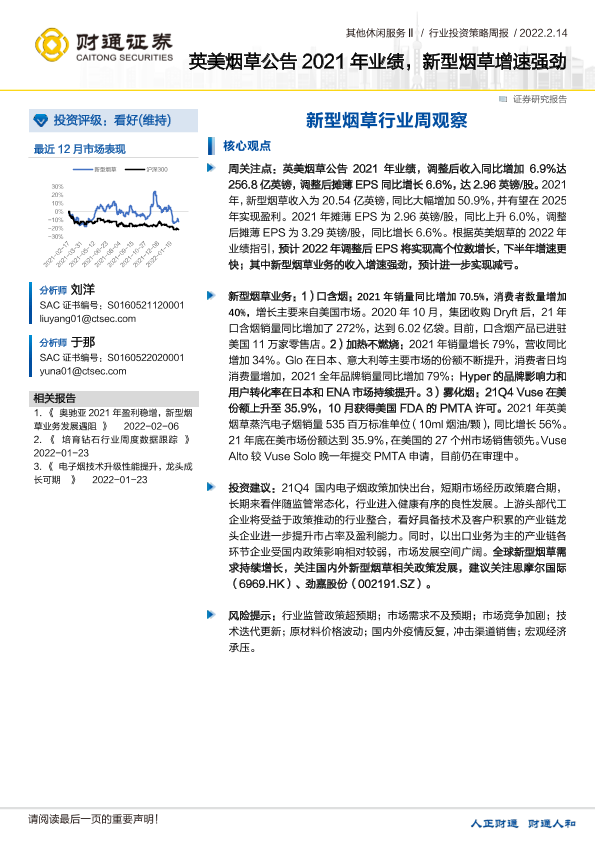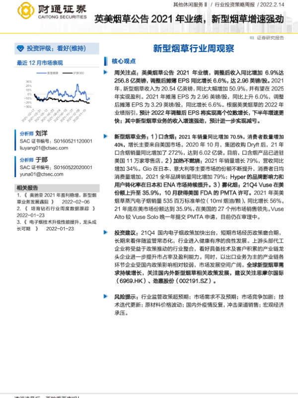 【财通证券】【20220214】2022-02-14-新型烟草行业周观察-英美烟草公告2021年业绩-新型烟草增速强劲-9页
