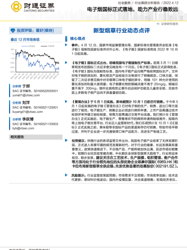 【财通证券】【20220412】新型烟草行业动态点评-电子烟国标正式落地-助力产业行稳致远-2页