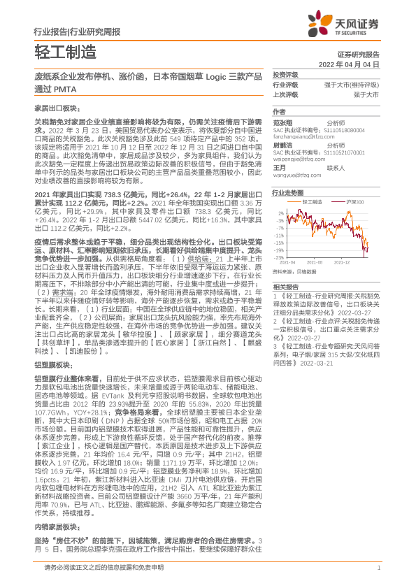 【天风证券】【20220406】2022-04-06-轻工制造-废纸系企业发布停机、涨价函-日本帝国烟草Logic三款产品通过PMTA-20页
