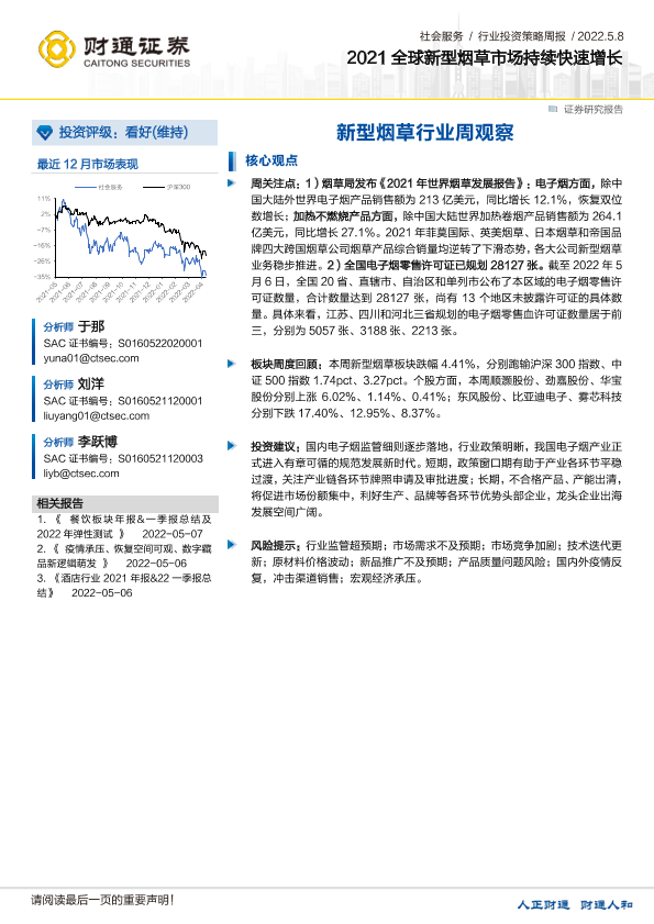 【财通证券】【20220508】2022-05-08-新型烟草行业周观察-2021全球新型烟草市场持续快速增长-10页