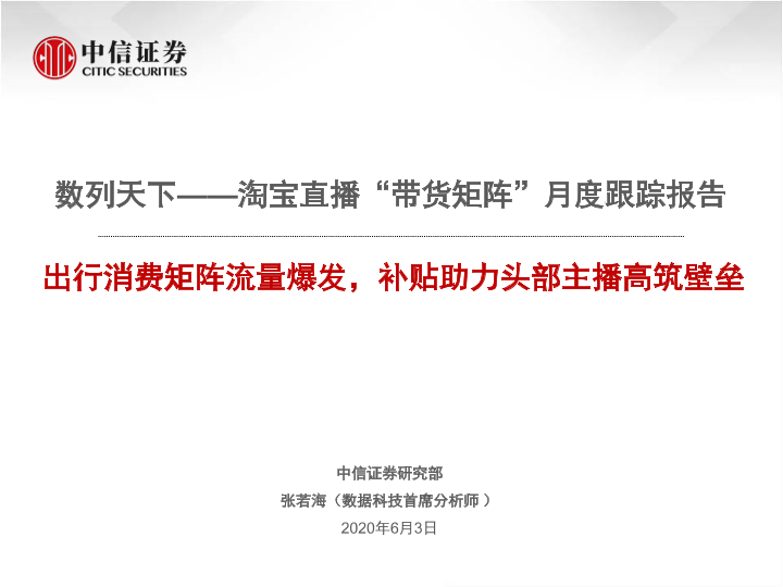 【中信证券】【20200603】2020.06.03-互联网行业淘宝直播“带货矩阵”月度跟踪报告:数列天下,出行消费矩阵流量爆发,补贴助力头部主播高筑壁垒-29页