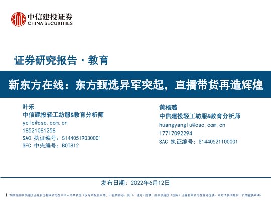 【中信建投证券】【20220612】新东方在线:东方甄选异军突起,直播带货再造辉煌-25页