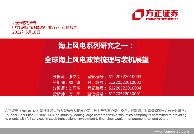 【方正证券】【20220310】电力设备与新能源行业海上风电系列研究之一:全球海上风电政策梳理与装机展望-35页