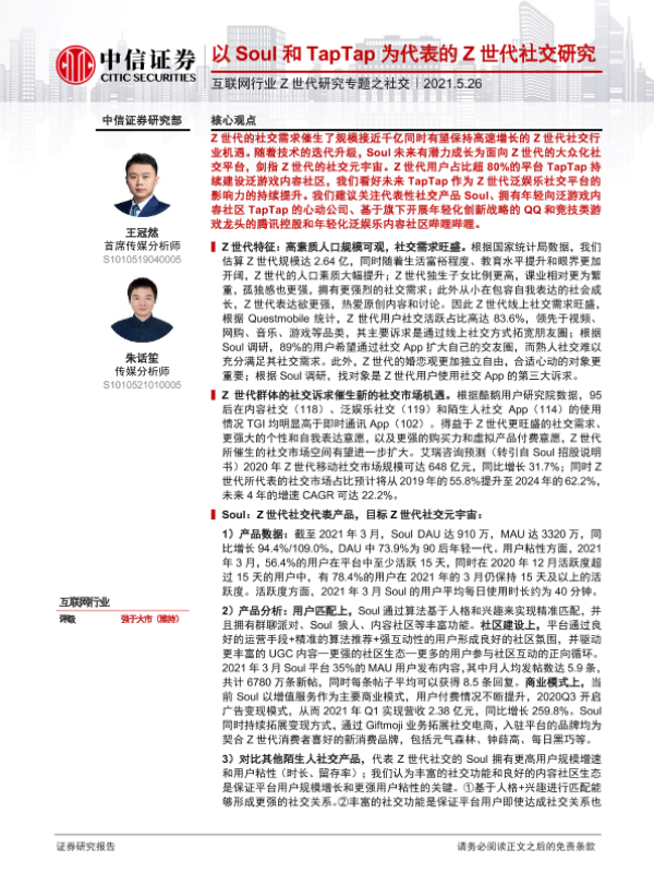【中信证券】【20210526】互联网行业Z世代研究专题之社交:以Soul和TapTap为代表的Z世代社交研究-41页