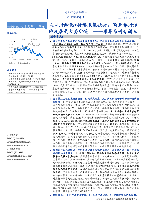 【海通证券】【20210716】人口老龄化+持续政策扶持,商业养老保险发展是大势所趋-36页
