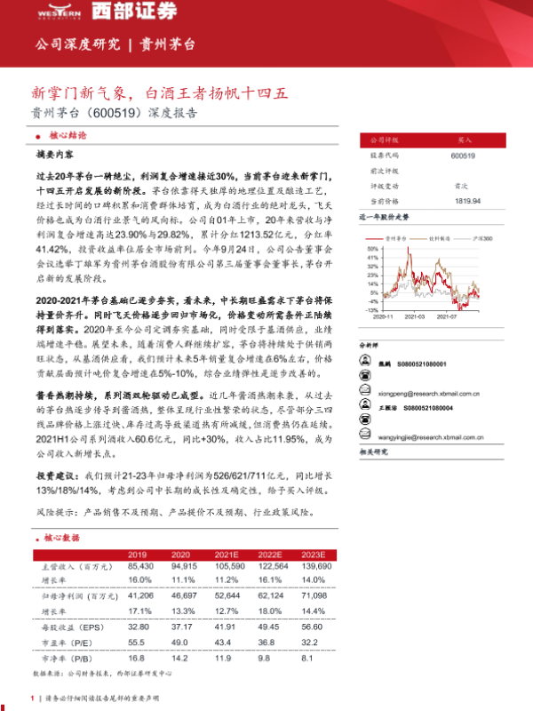 【西部证券】【20211106】贵州茅台:新掌门新气象,白酒王者扬帆十四五-36页