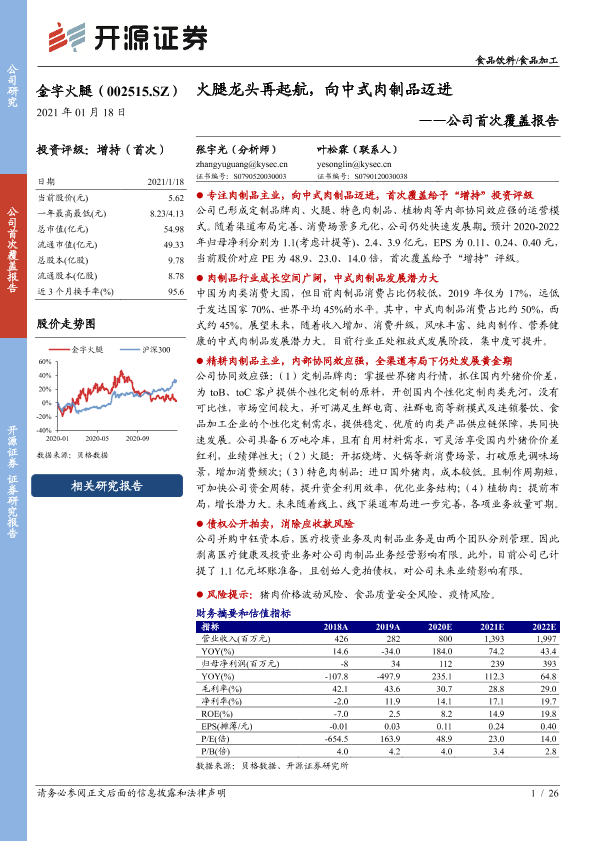 【开源证券】【20210118】2021.01.18-金字火腿:火腿龙头再起航,向中式肉制品迈进-26页