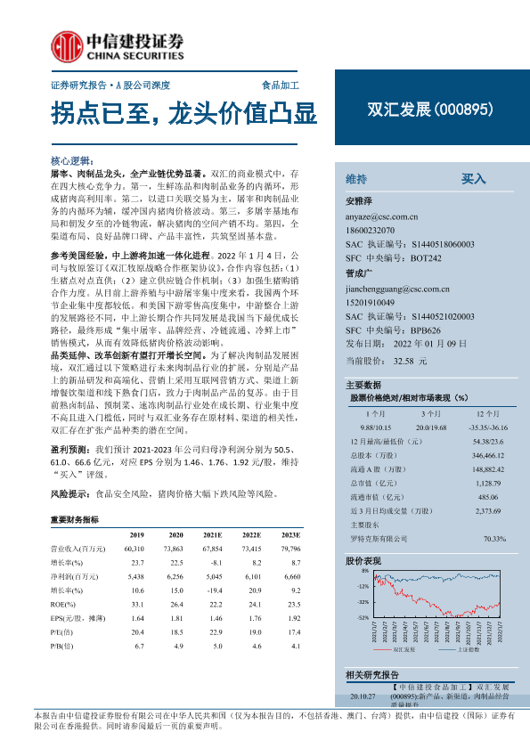 【中信建投证券】【20220109】双汇发展:拐点已至,龙头价值凸显-37页