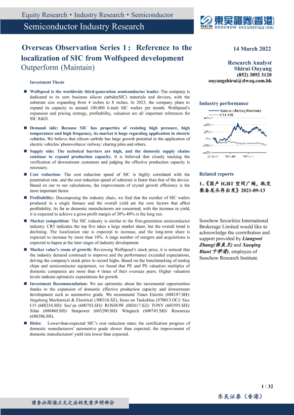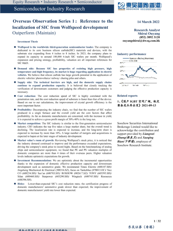 【东吴证券(香港)】【20220314】碳化硅行业海外观察系列一:从wolfspeed发展看碳化硅国产化-32页
