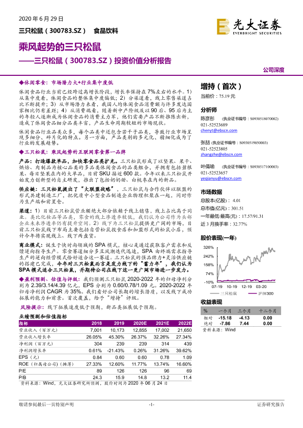 【光大证券】【20200629】投资价值分析报告:乘风起势的三只松鼠-50页