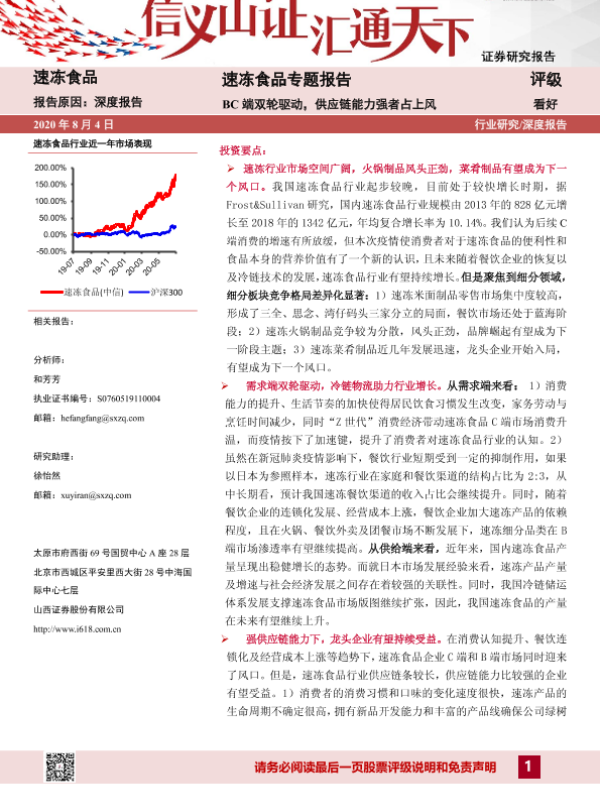 【山西证券】【20200804】2020.08.04-速冻食品专题报告:BC端双轮驱动,供应链能力强者占上风-34页