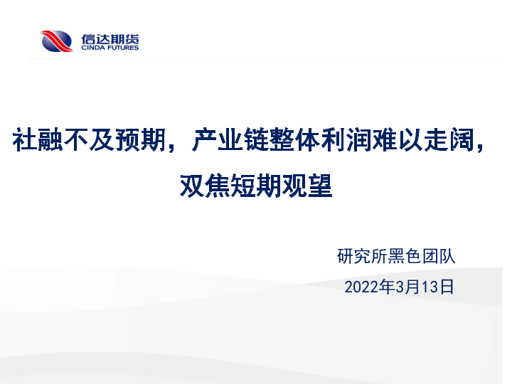 【信达期货】【20220313】社融不及预期,产业链整体利润难以走阔,双焦短期观望-20页