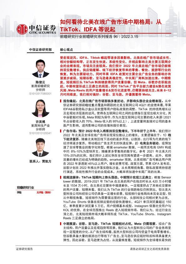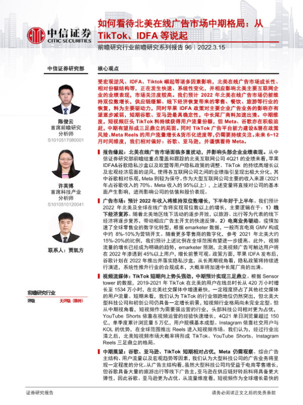 【中信证券】【20220315】如何看待北美在线广告市场中期格局,从TikTok、IDFA等说起-23页