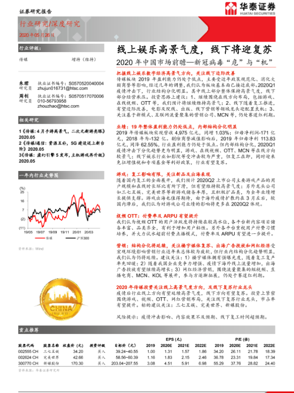 【华泰证券】【20200526】2020年中国市场前瞻:新冠病毒“危”与“机”,线上娱乐高景气度,线下将迎复苏-27页