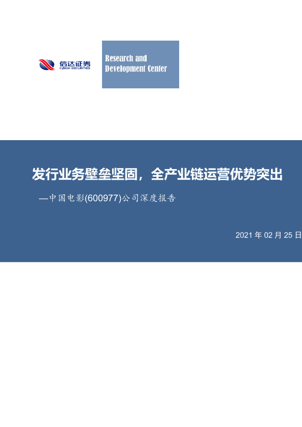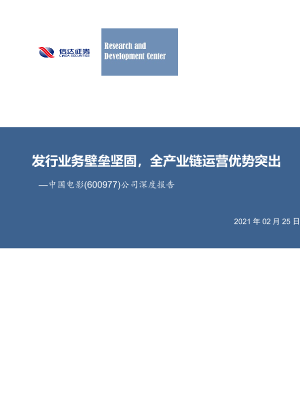 【信达证券】【20210225】中国电影:发行业务壁垒坚固,全产业链运营优势突出-29页