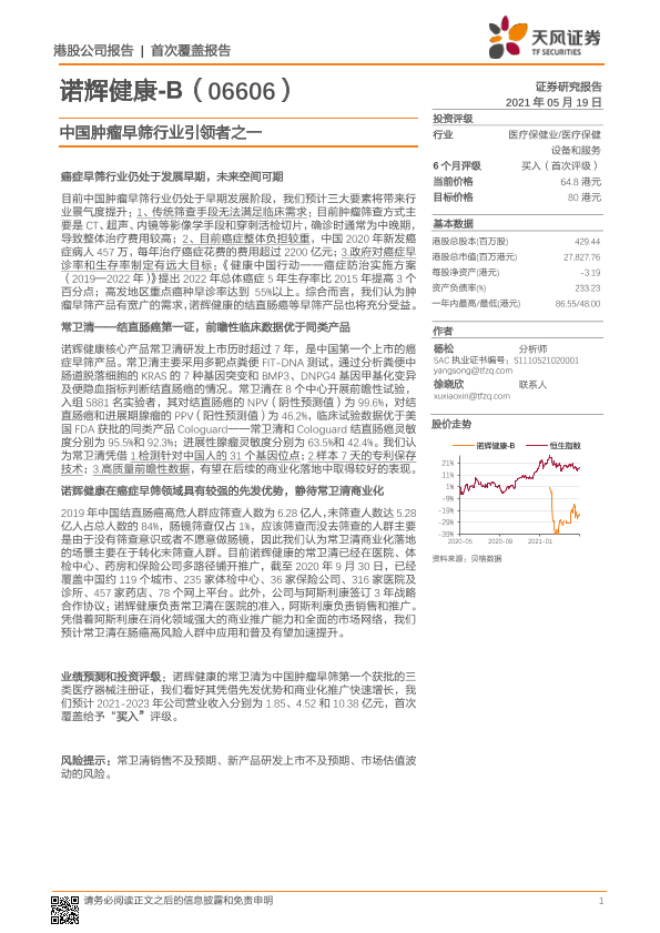 【天风证券】【20210519】诺辉健康:中国肿瘤早筛行业引领者之一-23页