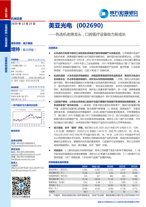 【申万宏源】【20201223】美亚光电:色选机老牌龙头,口腔医疗设备助力新成长-30页