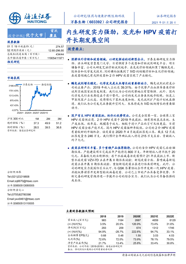 【海通证券】【20210120】万泰生物:内生研发实力强劲,发光和HPV疫苗打开长期发展空间-20页