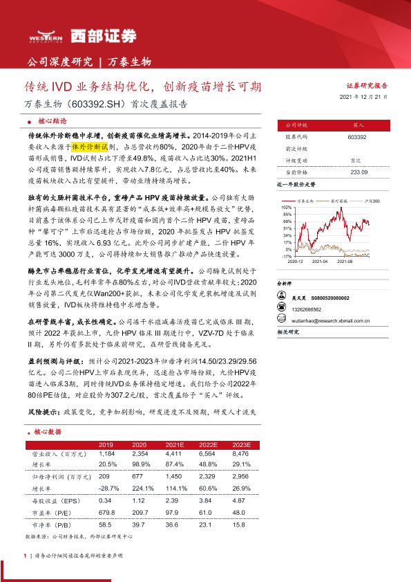 【西部证券】【20211221】万泰生物:传统IVD业务结构优化,创新疫苗增长可期-29页