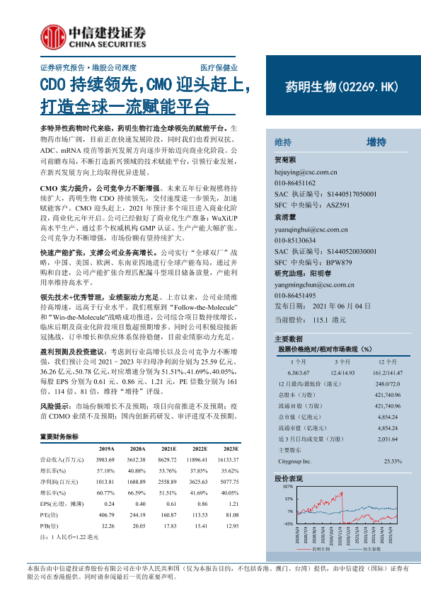 【中信建投证券】【20210604】药明生物:CDO持续领先,CMO迎头赶上,打造全球一流赋能平台-38页