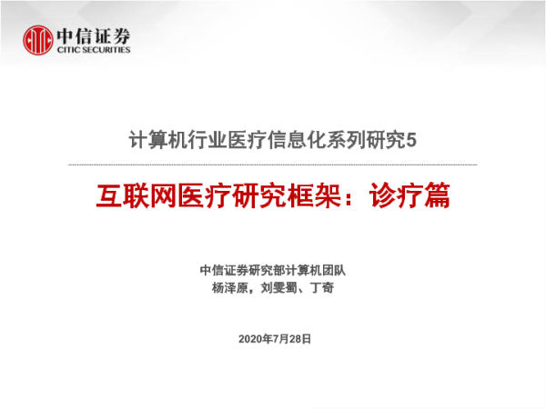 【中信证券】【20200728】计算机行业医疗信息化系列研究5-互联网医疗研究框架:诊疗篇-53页