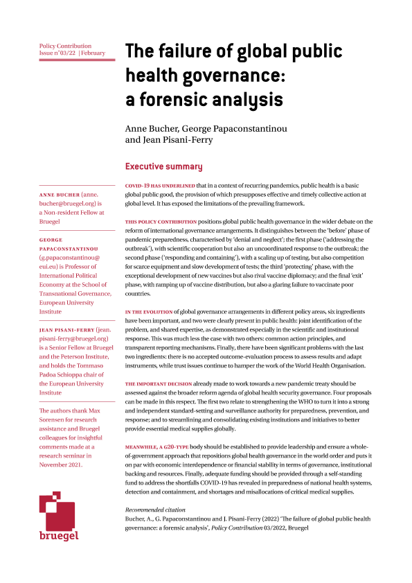 【布鲁盖尔研究所】【202202】全球公共卫生治理的失败:一项法医学分析-18页