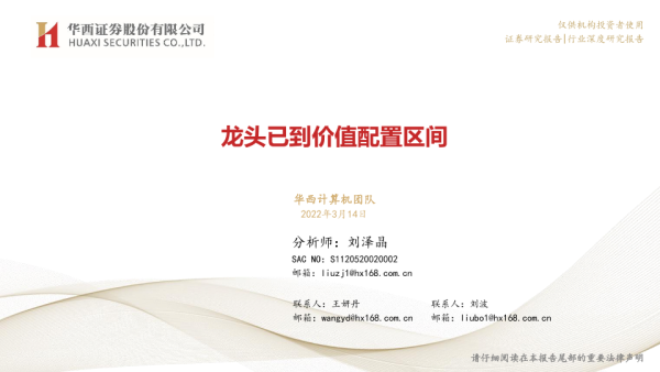 【华西证券】【20220314】计算机行业:龙头已到价值配置区间-21页