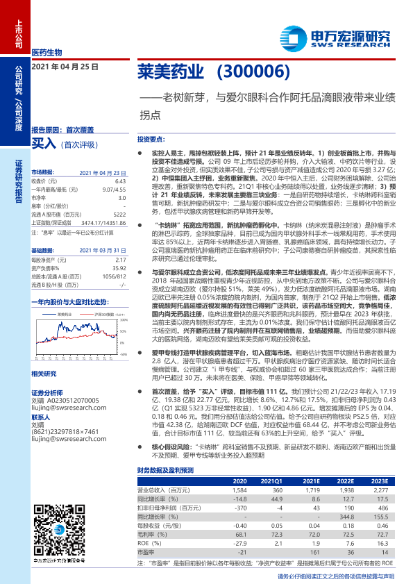 【申万宏源】【20210425】莱美药业:老树新芽,与爱尔眼科合作阿托品滴眼液带来业绩拐点-28页