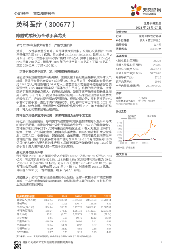 【天风证券】【20210307】英科医疗:跨越式成长为全球手套龙头-25页